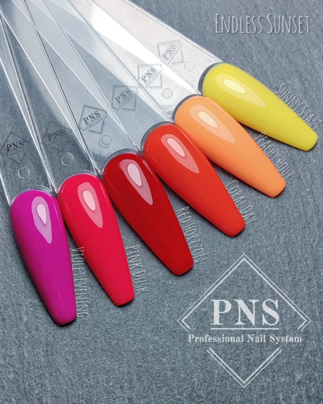 Laat je inspireren door de warme, zinderende kleuren van een prachtige zonsondergang met de PNS Endless Sunset gellak collectie. Deze lijn is speciaal ontworpen voor wie houdt van krachtige, verzadigde pigmenten die direct opvallen. Of je nu op het strand ligt of een zomerse avond uitgaat, met deze zes kleuren zijn je nagels altijd het middelpunt van de belangstelling.