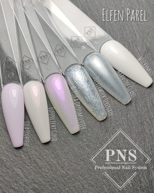 * Kleur 5 ( Glitter): "De eyecatcher van de collectie. Een explosie van zilveren glitters in verschillende groottes. Draag hem solo voor maximale impact of als sprankelend accent over een andere Elfenparel kleur."